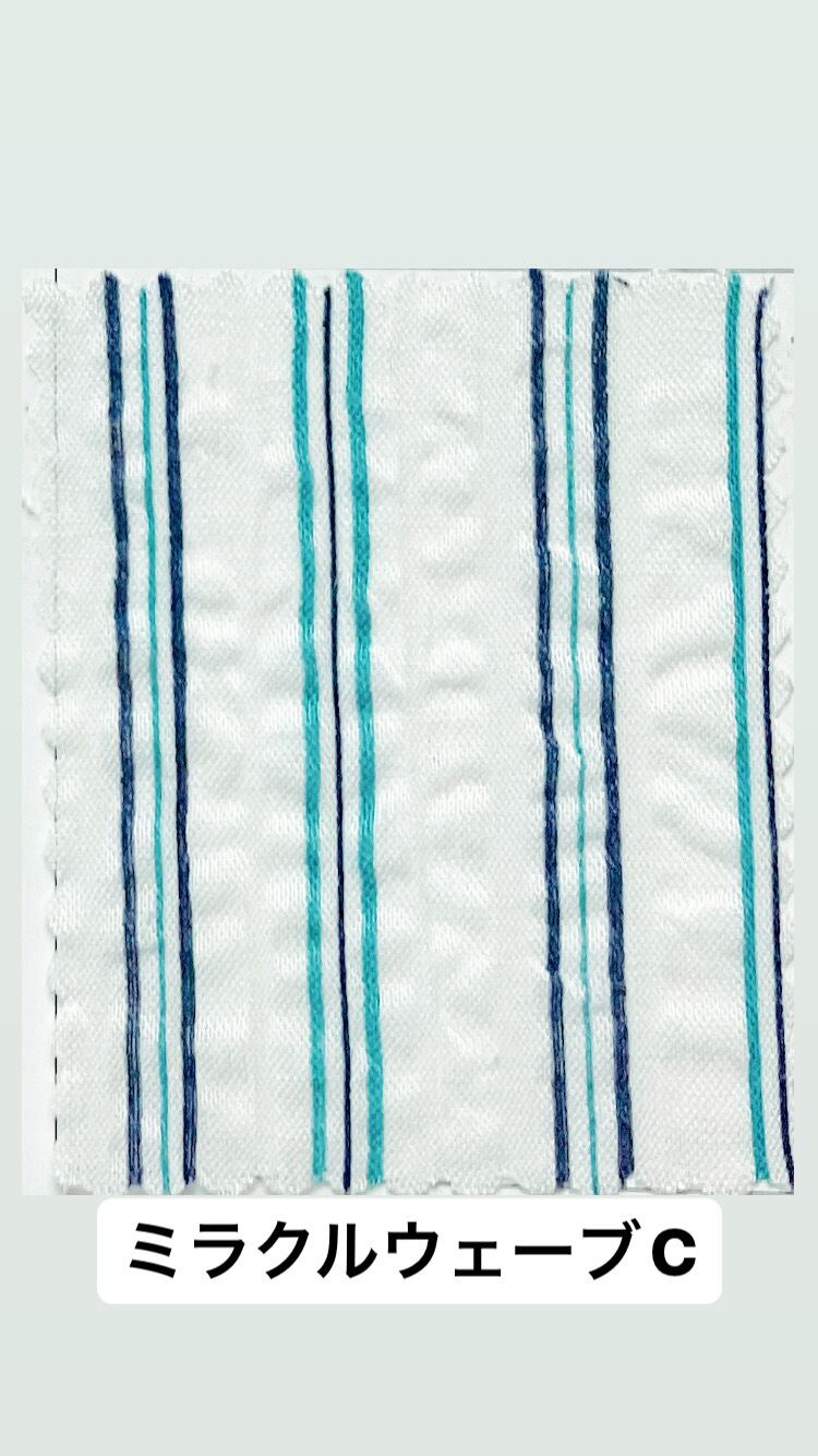 ちぢみのような凹凸感を、特殊技術のミラクルウェーブで再現した素材です。