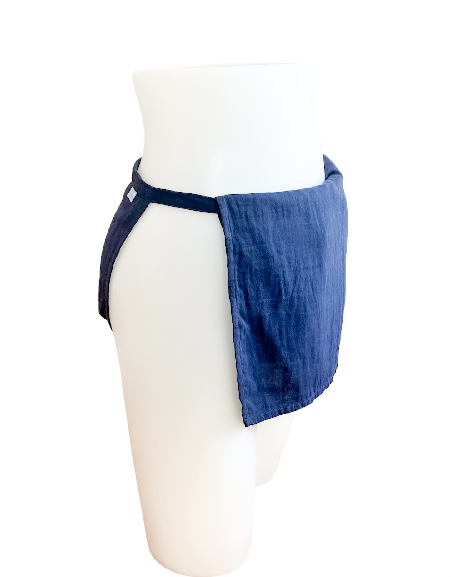 腰で紐を結ぶと浅履きにでき、ウエストで紐を結ぶとお腹、お尻周りがすっぽり包まれ温めることができます。