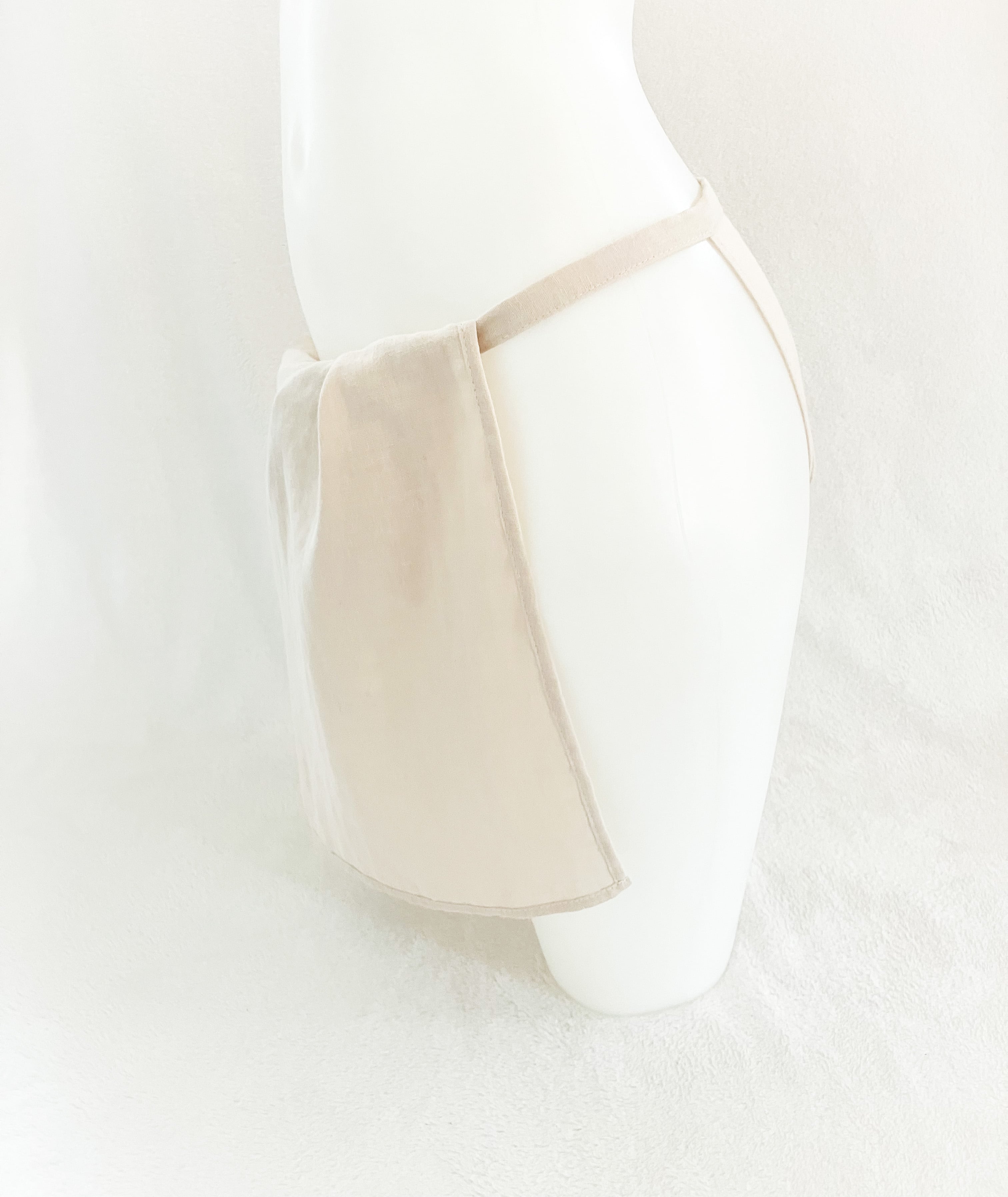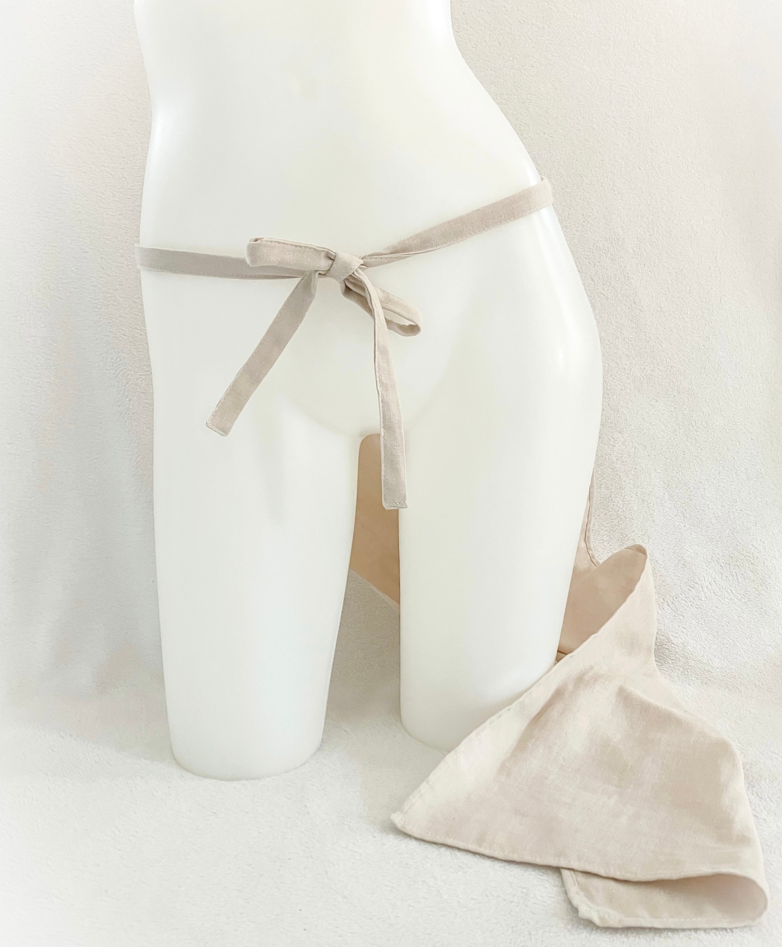 腰で紐を結ぶと浅履きにでき、ウエストで紐を結ぶとお腹、お尻周りがすっぽり包まれ温めることができます。